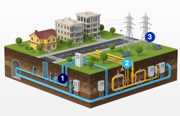 Collected data is visualized via a central server and provided to users, enabling accurate billing, usage pattern analysis, and communication between suppliers and consumers. In addition, smart functions such as fault detection, leakage monitoring, and remote control are implemented to enhance reliability and operational efficiency across utility networks.