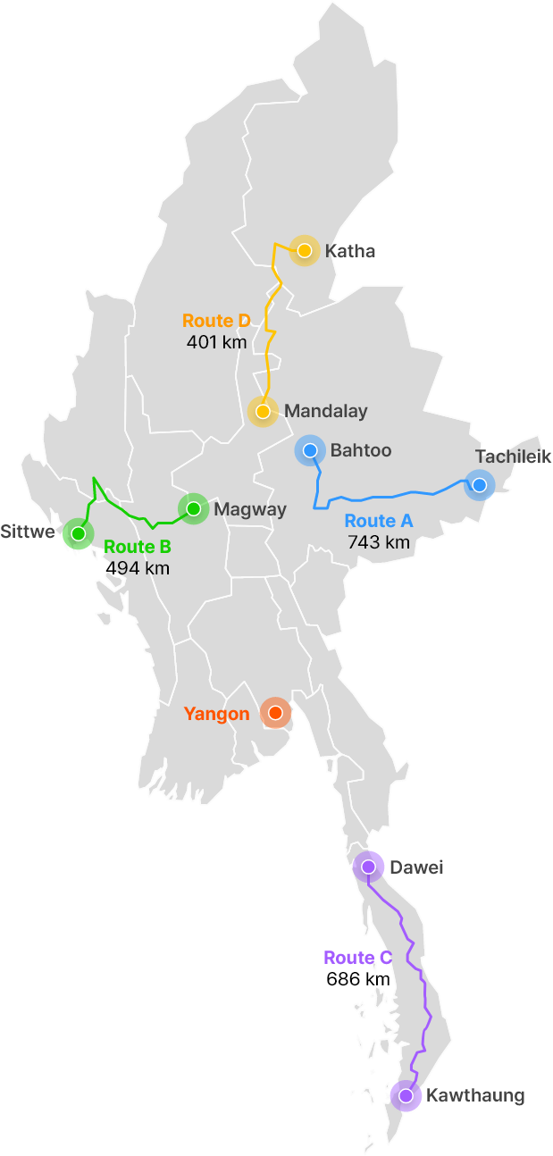 DT expanded Myanmar's National Backbone Network by constructing a DWDM backbone and MSPP access network. The project covered the installation of 2,432 km of fiber optic cable (FOC), including equipment supply, installation, testing, and commissioning — delivering a fully integrated infrastructure solution.