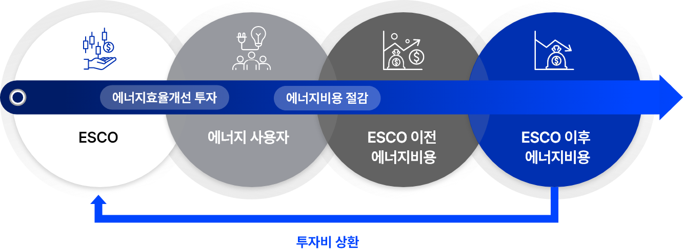 전문기업이 대신 투자하여 설비를 개선하고 절감된 에너지 비용으로 투자비를 상환하는 방식입니다.