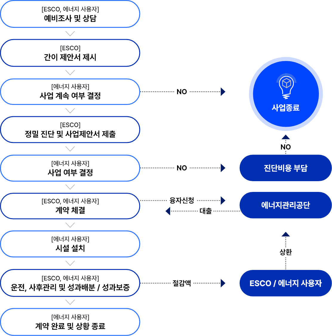 ESCO 투자사업은 에너지 사용자가 초기 비용이나 기술적 제약으로 효율화 사업을 직접 시행하기 어려울 때,