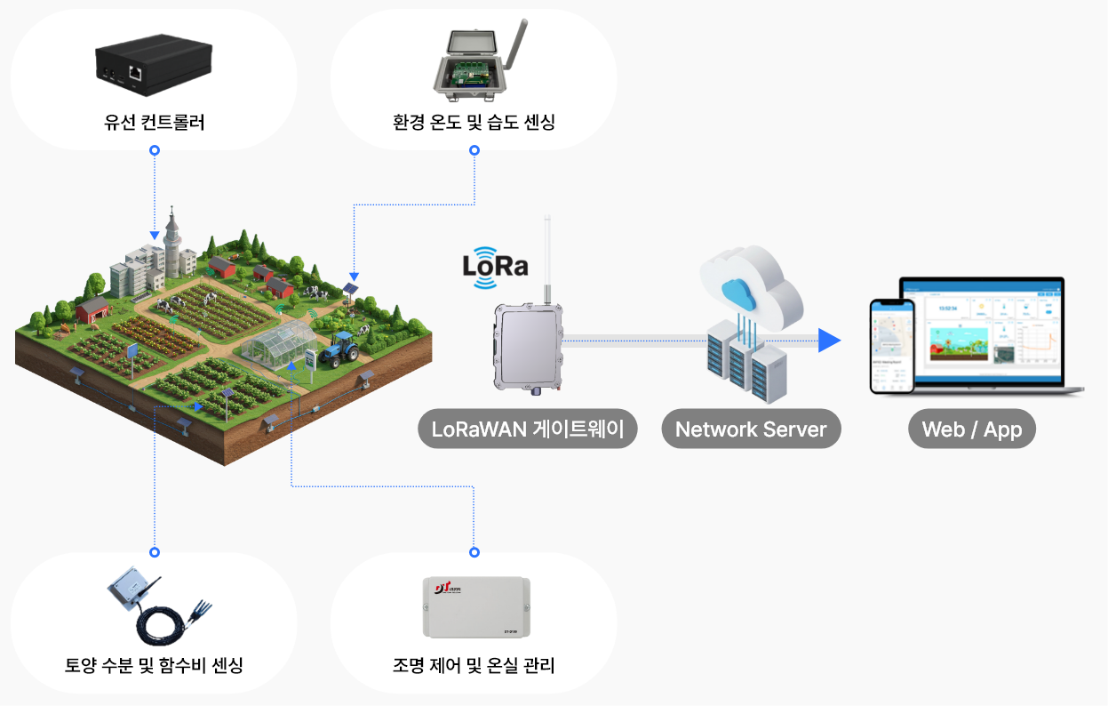 작물의 수분 상태, 주변 온도와 습도, 가축의 건강, 자산 위치 등 다양한 데이터를 실시간으로 수집 · 분석하여,
